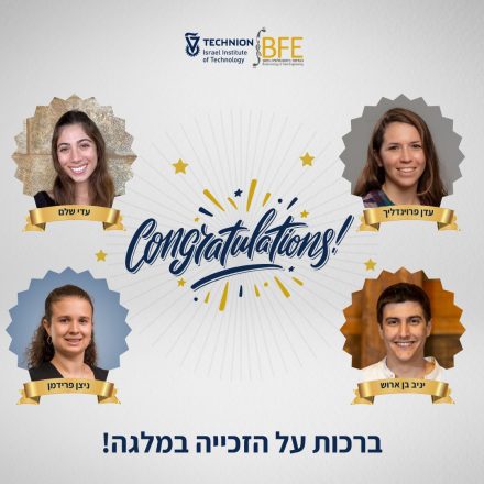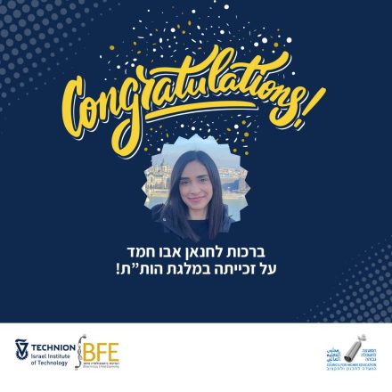 כולנו בפקולטה גאים ונרגשים לבשר על 5 זכיות של דוקטורנטים ומסטרנטים במלגות יוקרתיות שונות: חנאן אבו חמד, דוקטורנטית ממעבדתה של פרופ' אסתי סגל זכתה במלגת הות"ת היוקרתית לדוקטורנטים מצטיינים מאוכלוסיות הגיוון והפריפריה! חנאן זכתה במלגה זו בזכות פרסום מאמרים, השתתפות מוצלחת בכנסים ועל הישגים במחקריה, העוסקים באפיון של משטחים ופיתוח ננו־נשאים להגנה בת קיימא. זאת הפעם השנייה שחנאן זוכה במלגה. במהלך לימודיה לתואר שני, זכתה במלגת ג'ייקובס היוקרתית. בנוסף, זכו אנו שמחים וגאים מאוד לבשר על זכייה מרובעת (!) במלגות אצלנו בפקולטה: הדוקטורנטיות עדן פרוינליך מהמעבדה של פרופ'ח בעז מזרחי, עדי שלם מהמעבדה של פרופ' אילת פישמן והמסטרנט יניב בן ארוש מהמעבדה של ד"ר צחי רייזל במלגת ג'ייקובס והמסטרנטית ניצן פרידמן מהמעבדה של פרופ'ח מאיה דוידוביץ־פנחס