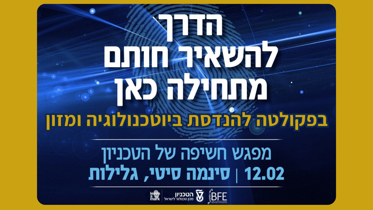הפקולטה להנדסת ביוטכנולוגיה ומזון בטכניון היא היחידה בישראל המשלבת בין BioTech ו- FoodTech, מקצועות ההייטק של המחר.