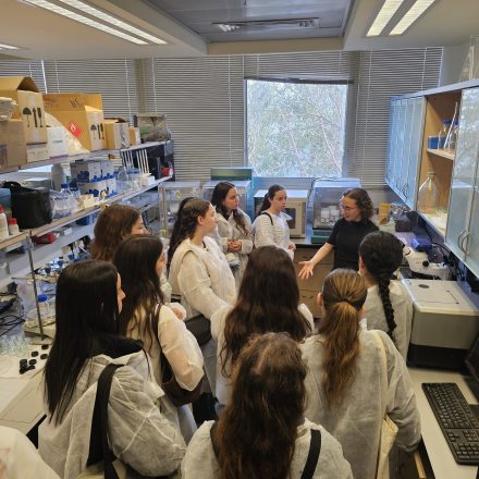 Biotechnology Track of the Leo Baeck Educational Center and the 12th Grade Biology Track of the Reali School in Haifa Visit the Faculty In early and mid-February, During their visit, they were introduced to our classrooms and research laboratories. Both schools attended fascinating introductory lectures about the Faculty, presented by the Dean of the Faculty, Professor Esti Segal, Associate Professor Biaz Mizhrahi, Dr. Tzachi Raizel, faculty member, and Dr. Adi Gross, lab manager for Associate Professor Mizhrahi.