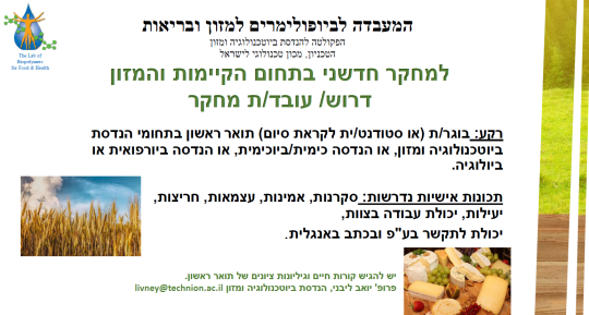 עובד/ת מחקר במעבדה לביופולימרים למזון ובריאות